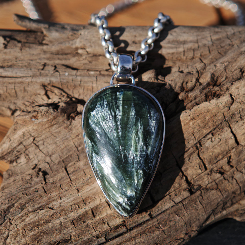 Seraphinit (Seelenwachstum) Anhänger Tropfen S925 rhodiniert Unikat