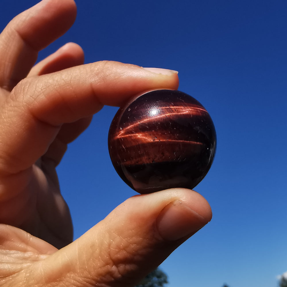 Das Falkenauge, auch bekannt als blaues Tigerauge steht für Mut, Klarheit, Schutz und Weitblick. Sie zeigen eine faszinierende blaue Lichtreflexion der Faserstruktur.