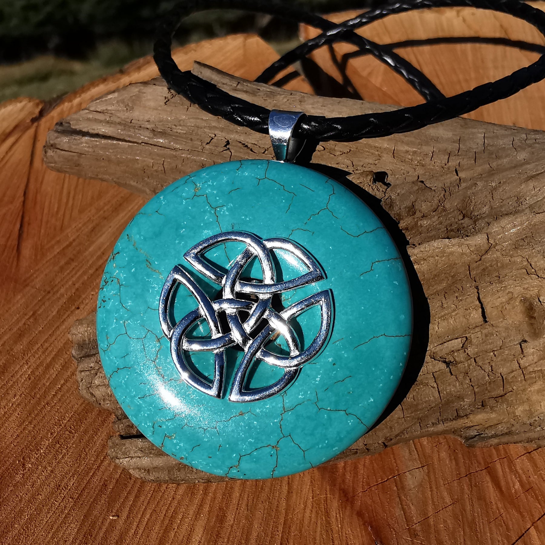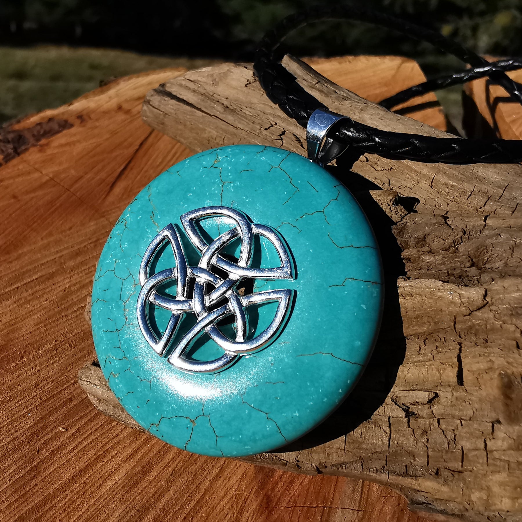 Türkis Anhänger Donut 45mm mit Donuthalter Keltenknoten S925