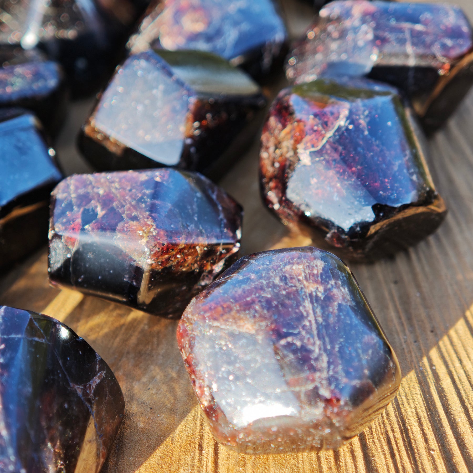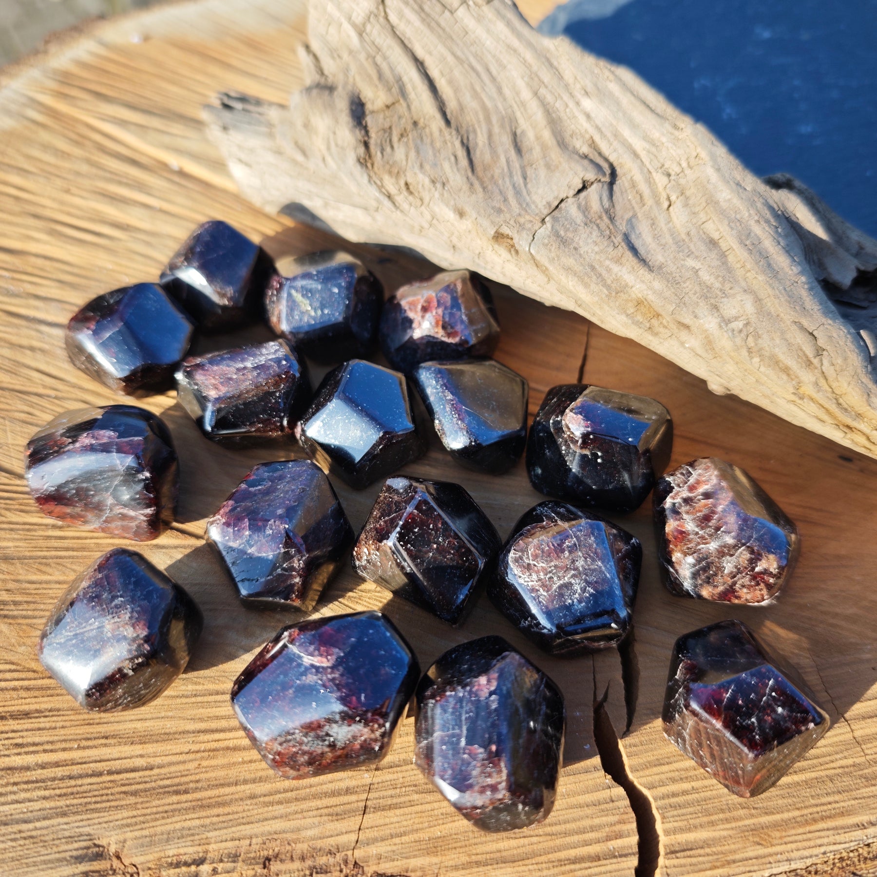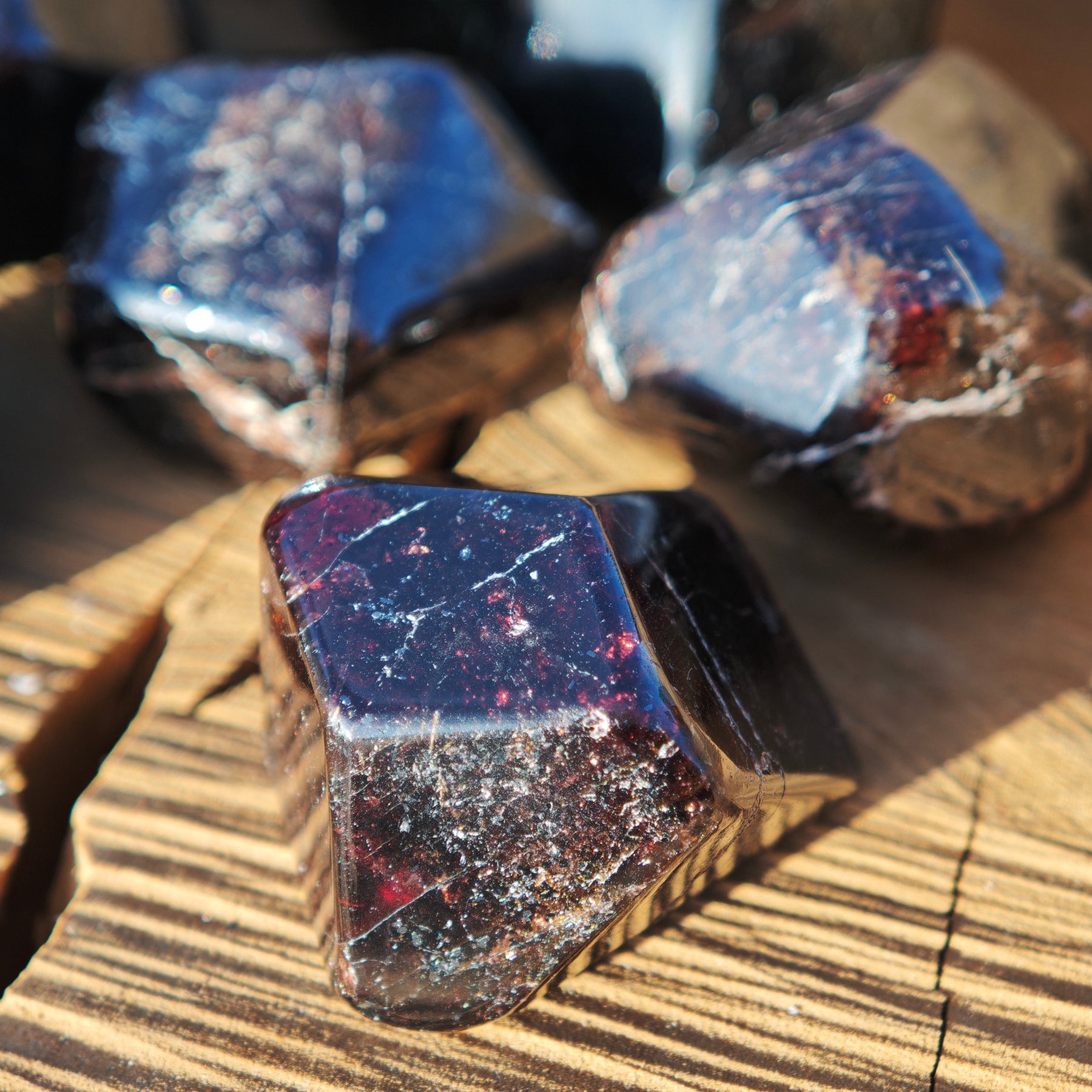 Natürlich gewachsene Granat-Kristalle, deren Flächen und Kanten liebevoll von Hand poliert wurden, ohne die ursprüngliche natürliche Form zu verändern!