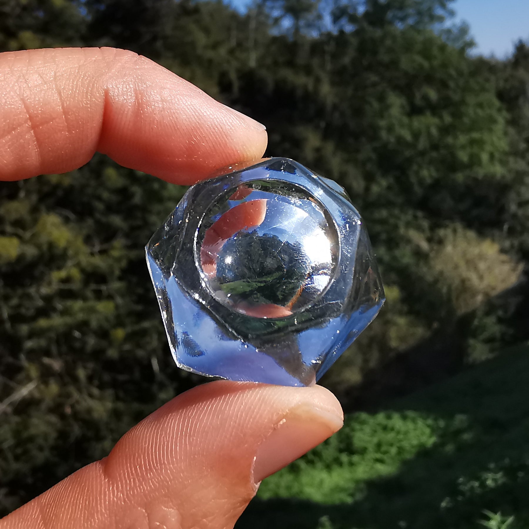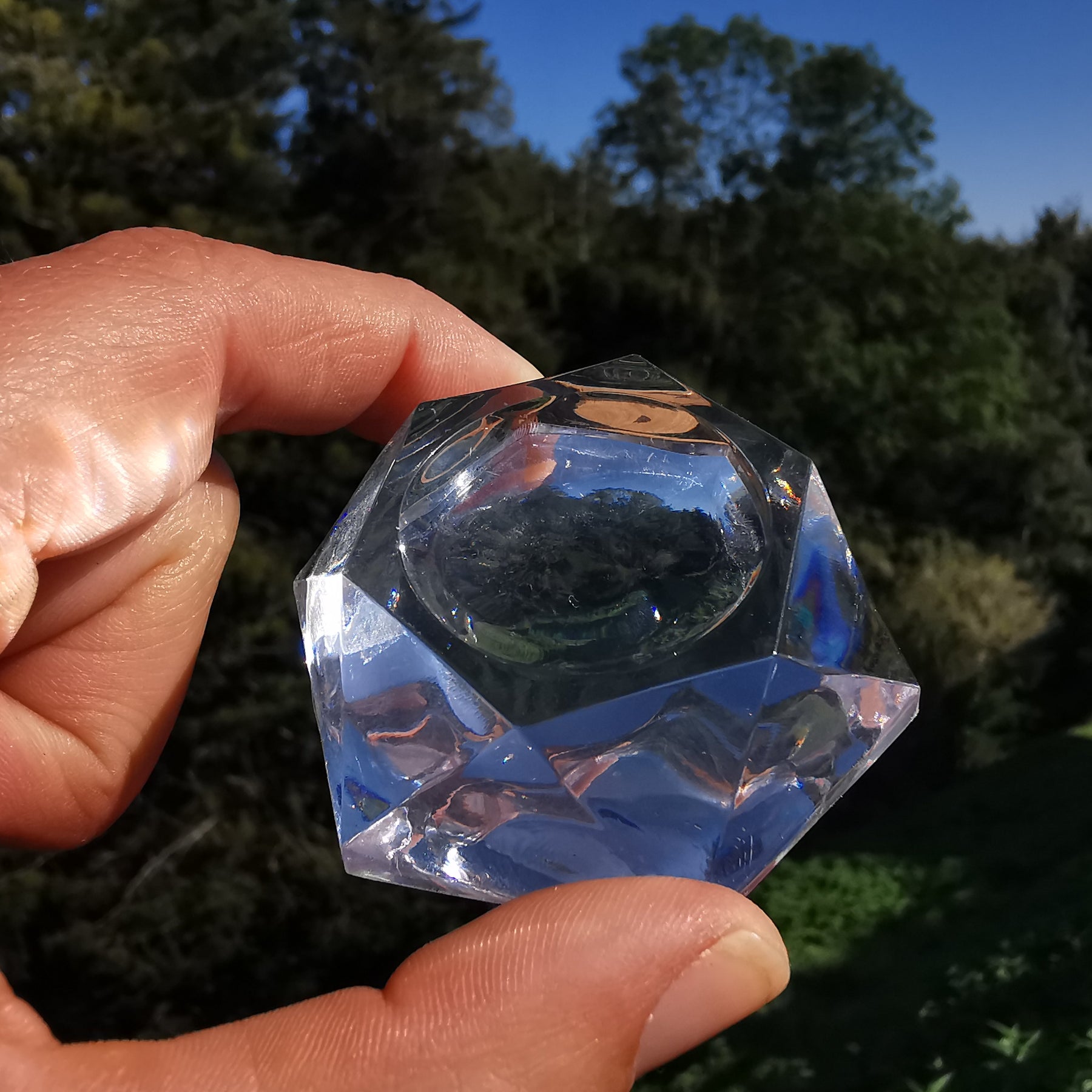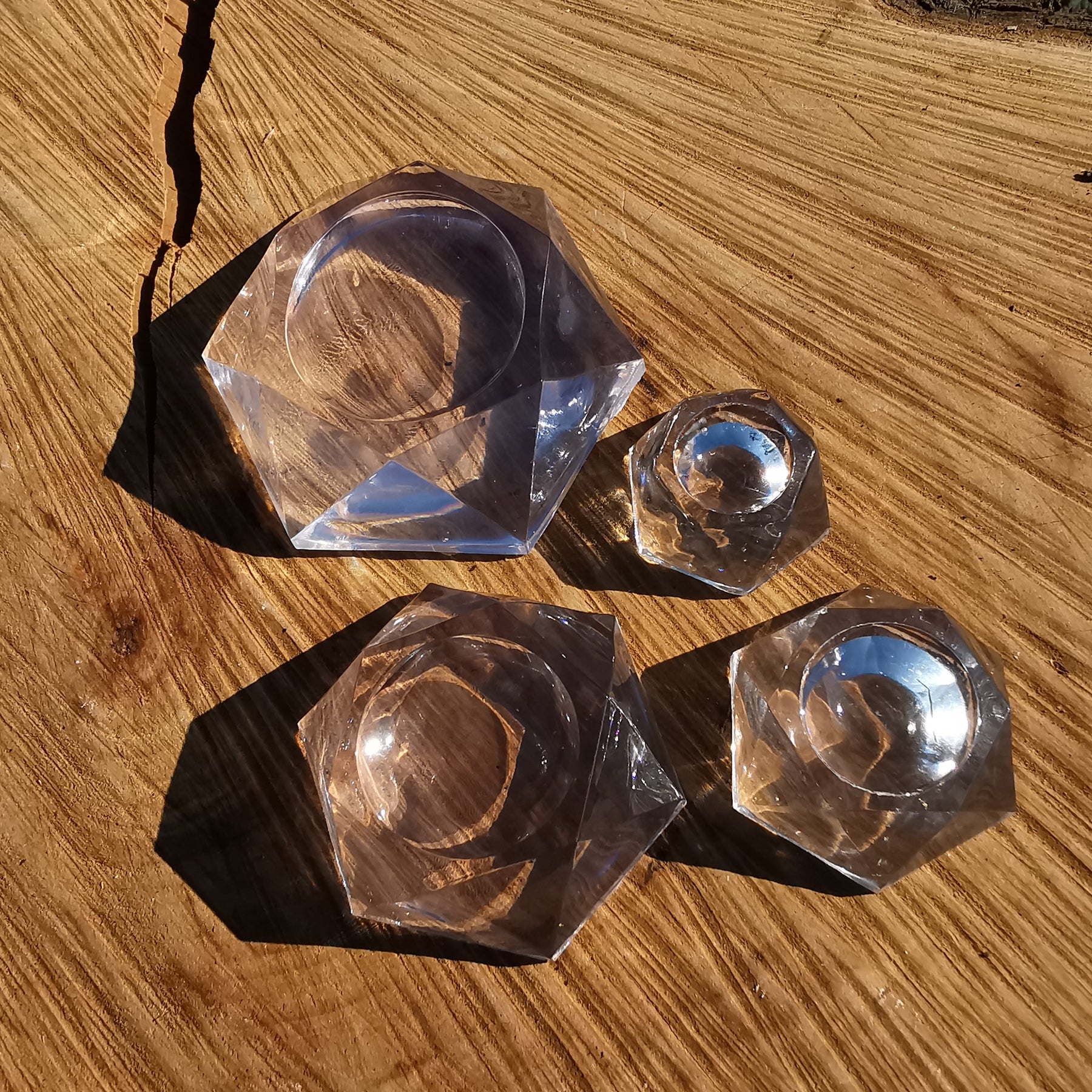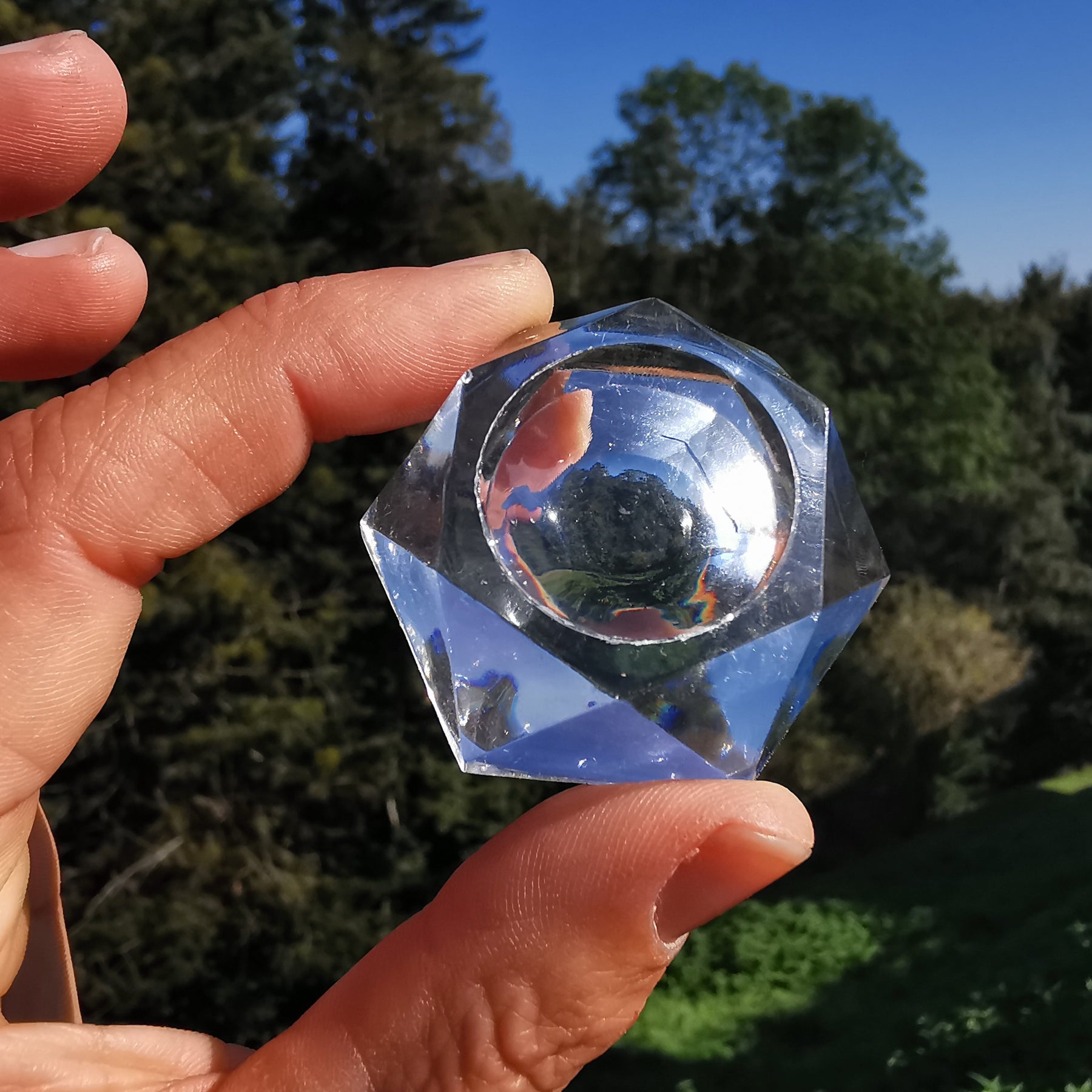 Dekorativer und stabiler Kugelständer aus glasklarem Kunststoff in hexagonaler Form.