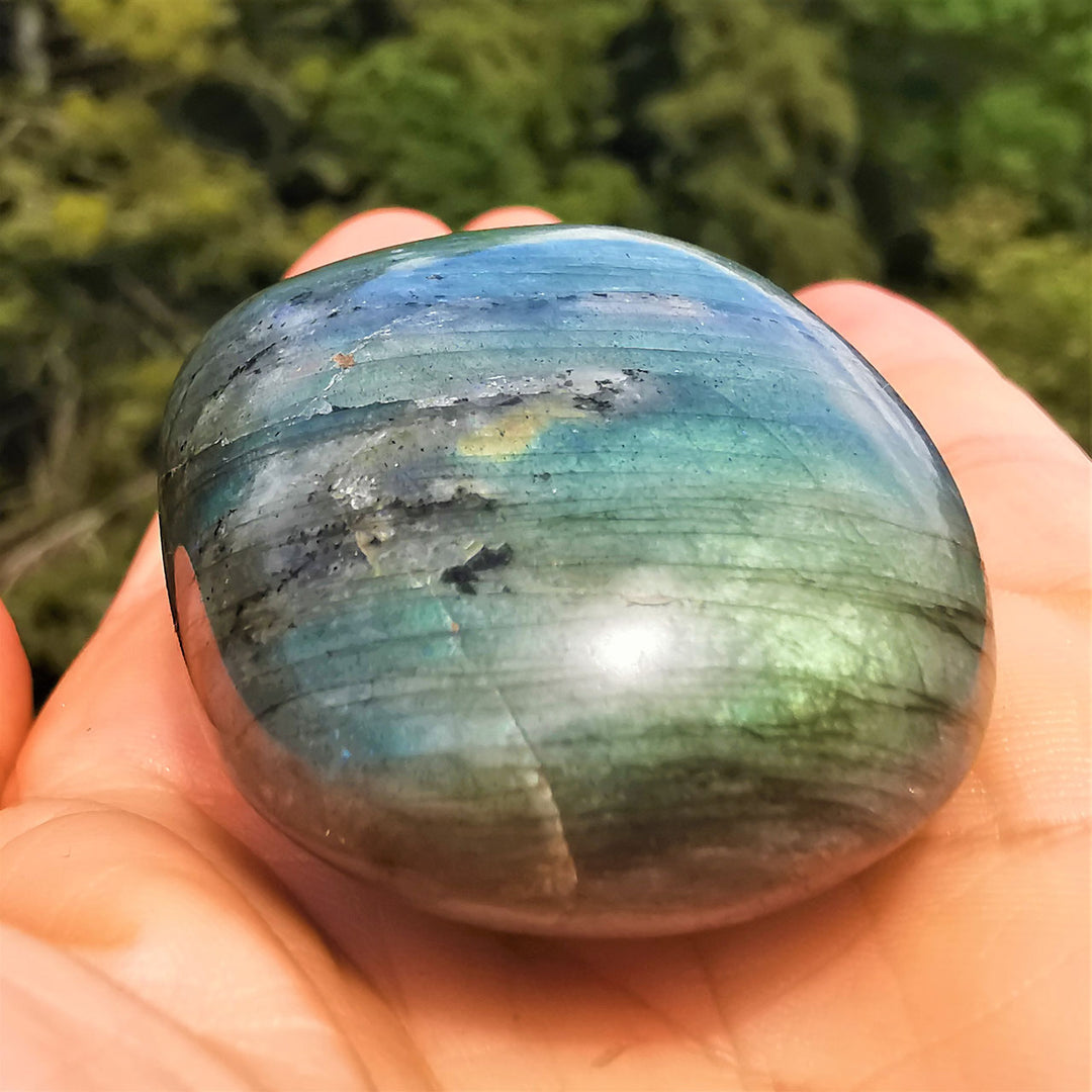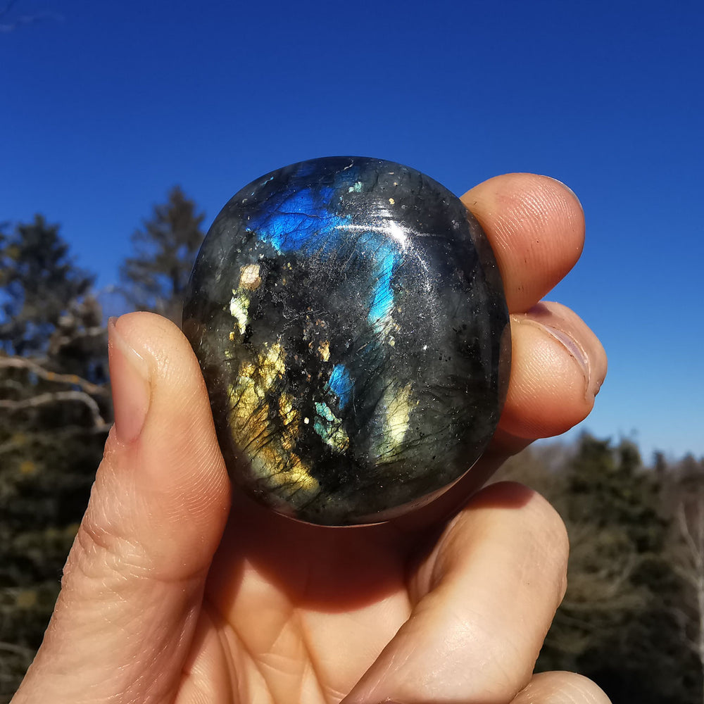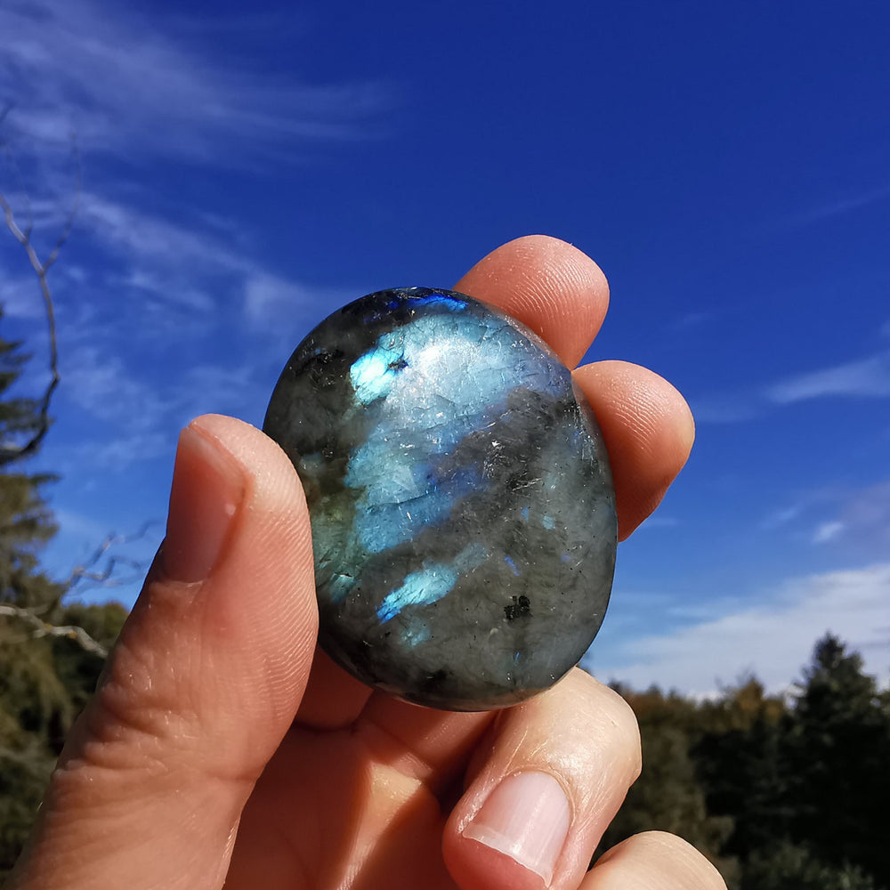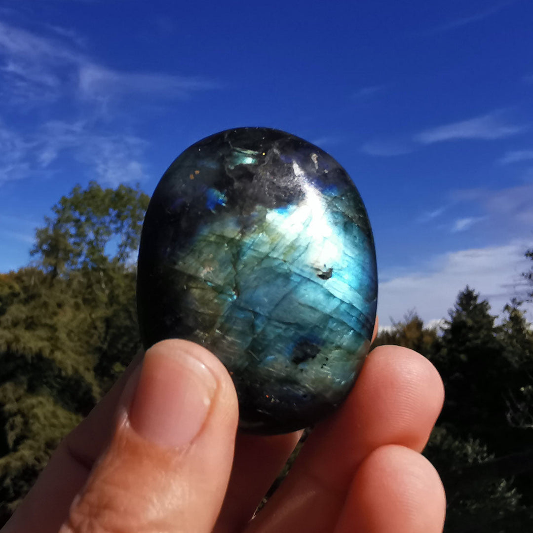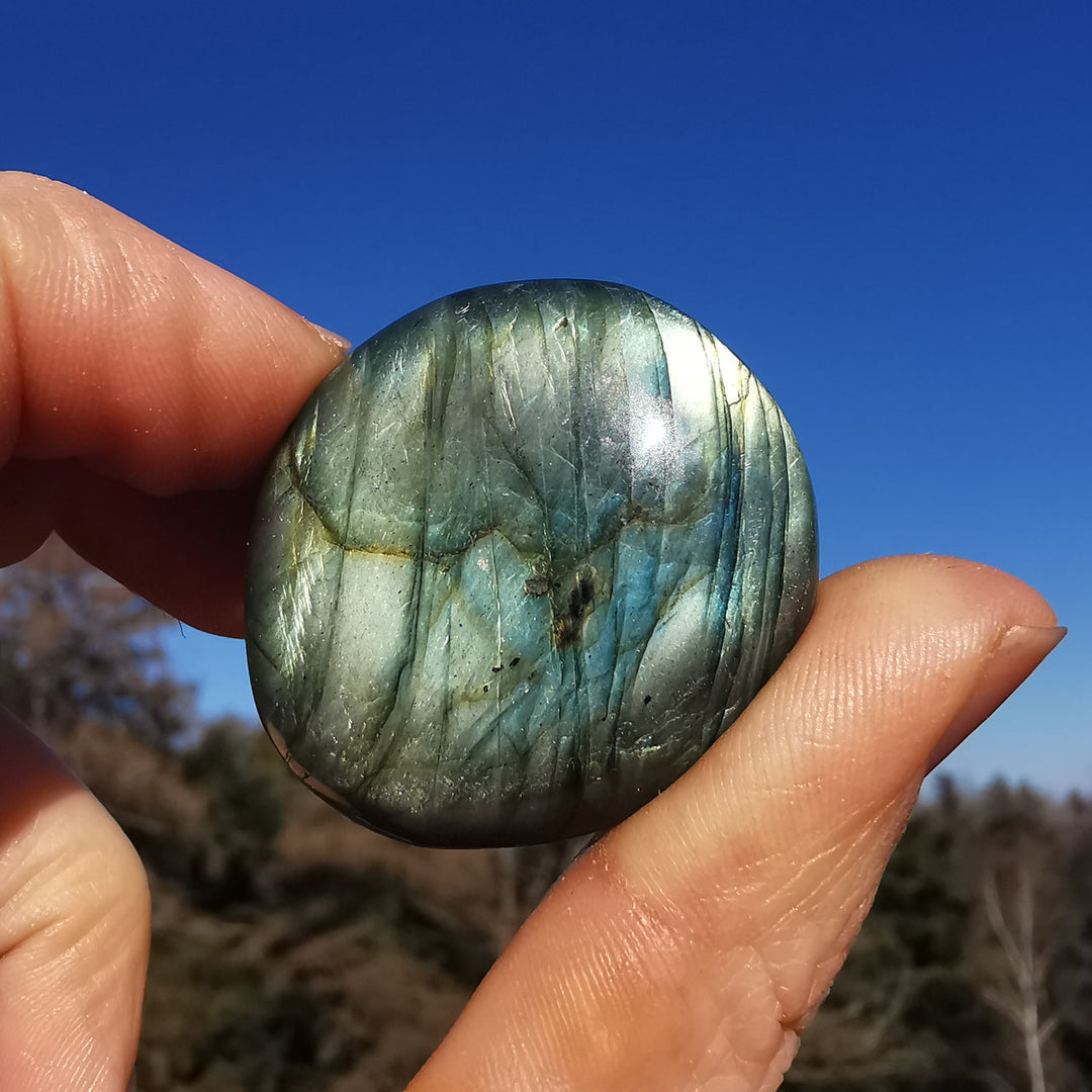 Labradorit öffnet uns die Augen für unsere wahre Identität, stärkt die Intuition und die Medialität. Sein buntes, wechselhaftes Farbenspiel und seine Anwesenheit im Raum fördert Kreativität, Begeisterungsfähigkeit, Phantasie und Ideenfülle. Er schützt vor Energieräubern, vermag aber auch psychische Angriffe abzuwenden, wenn andere negative Emotionen gegen einem verwenden. Er reinigt und schützt zudem die Aura und hilft wenn nötig dabei das Herzschakra abzuschirmen.und öffnet uns für die Erkenntnis, dass auch der Mensch ein Lichtwesen ist.
