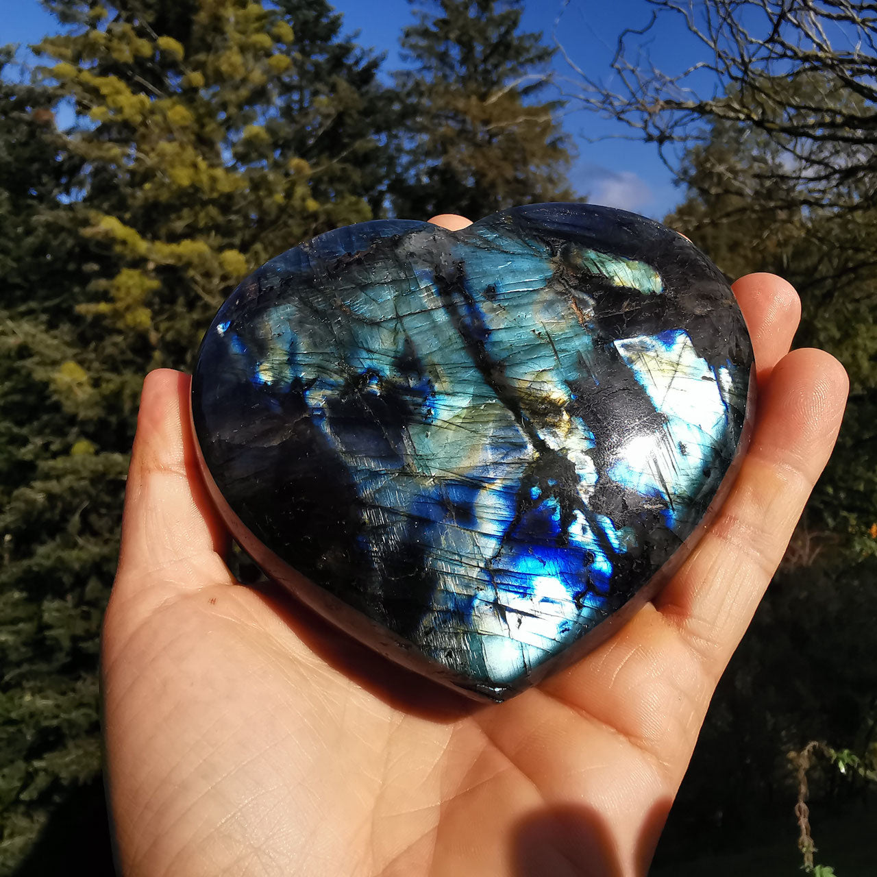 Wunderschönes Labradorit-Spektrolith Herz in TOP Qualität! Beidseitig unterschiedlich schillernd in den schönsten Farben. In Echt noch schöner als auf den Fotos...