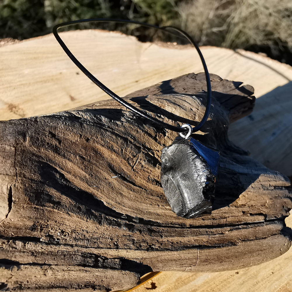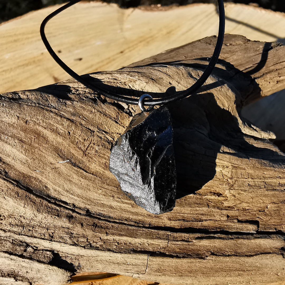 Er besteht hauptsächlich aus Kohlenstoff und kommt in zwei Varianten vor: dem häufigeren schwarzen Schungit (30–50 % Kohlenstoff) und dem seltenen Edelschungit (92–98 % Kohlenstoff), der besonders kraftvoll, aber auch empfindlich und schwer zu bearbeiten ist.