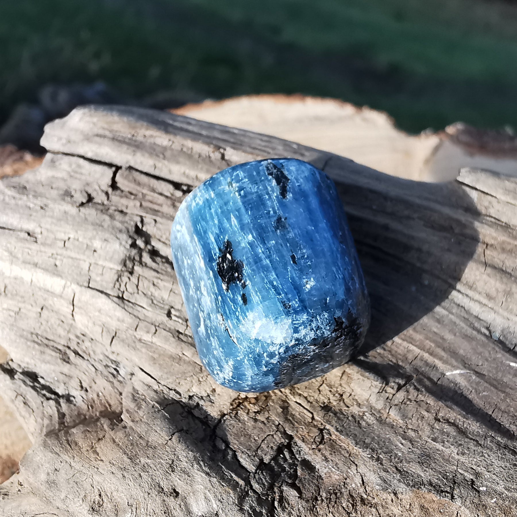 Kyanit ist eines der wenigen Mineralien die nie gereinigt oder geklärt werden müssen. Der Kyanit lädt sich nie mit negativen Vibrationen oder Energien auf! Seine beruhigende, klärende Energie ist unbeschränkt einsetzbar und macht in zu einem der besten Steine für die Einstimmung auf die Meditation. Auch für die Traumarbeit ist er zu verwenden, da mit seiner Hilfe vergessene Träume wieder erinnert werden können. Der Kyanit in der Lage alle Chakras automatisch und unmittelbar aufeinander abzugleichen. Besonders gut wirkt der Kyanit auf das Kehl- und das Stirnchakra. Er bringt grosse Ruhe und Zufriedenheit, befreit uns vor Angst, Frustration, Stress, sowie belastenden Einflüssen und macht uns friedfertig. Er stärkt die eigene Identität, verbessert die Konzentration und ermöglicht einem, das eigene Leben wieder genießen zu können.