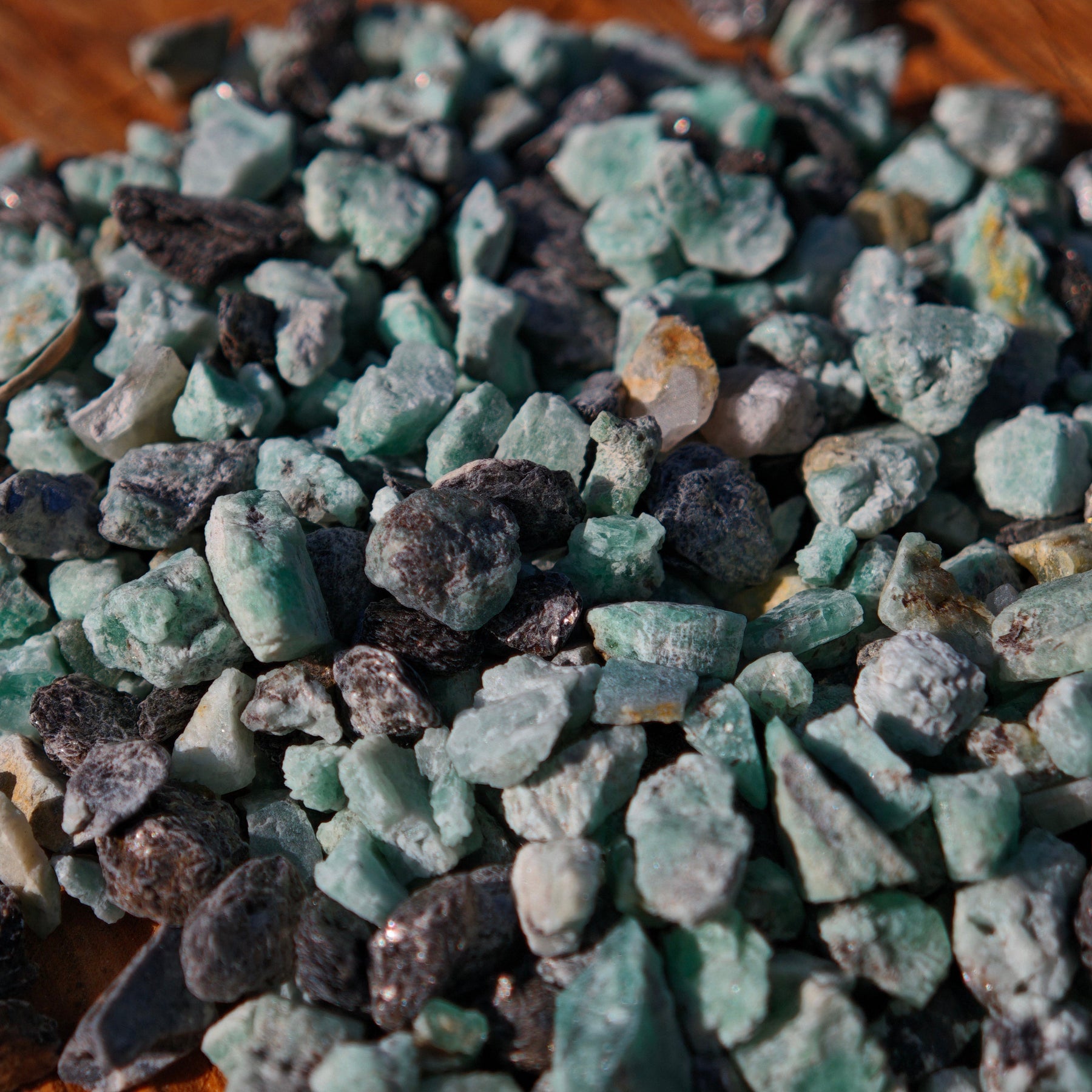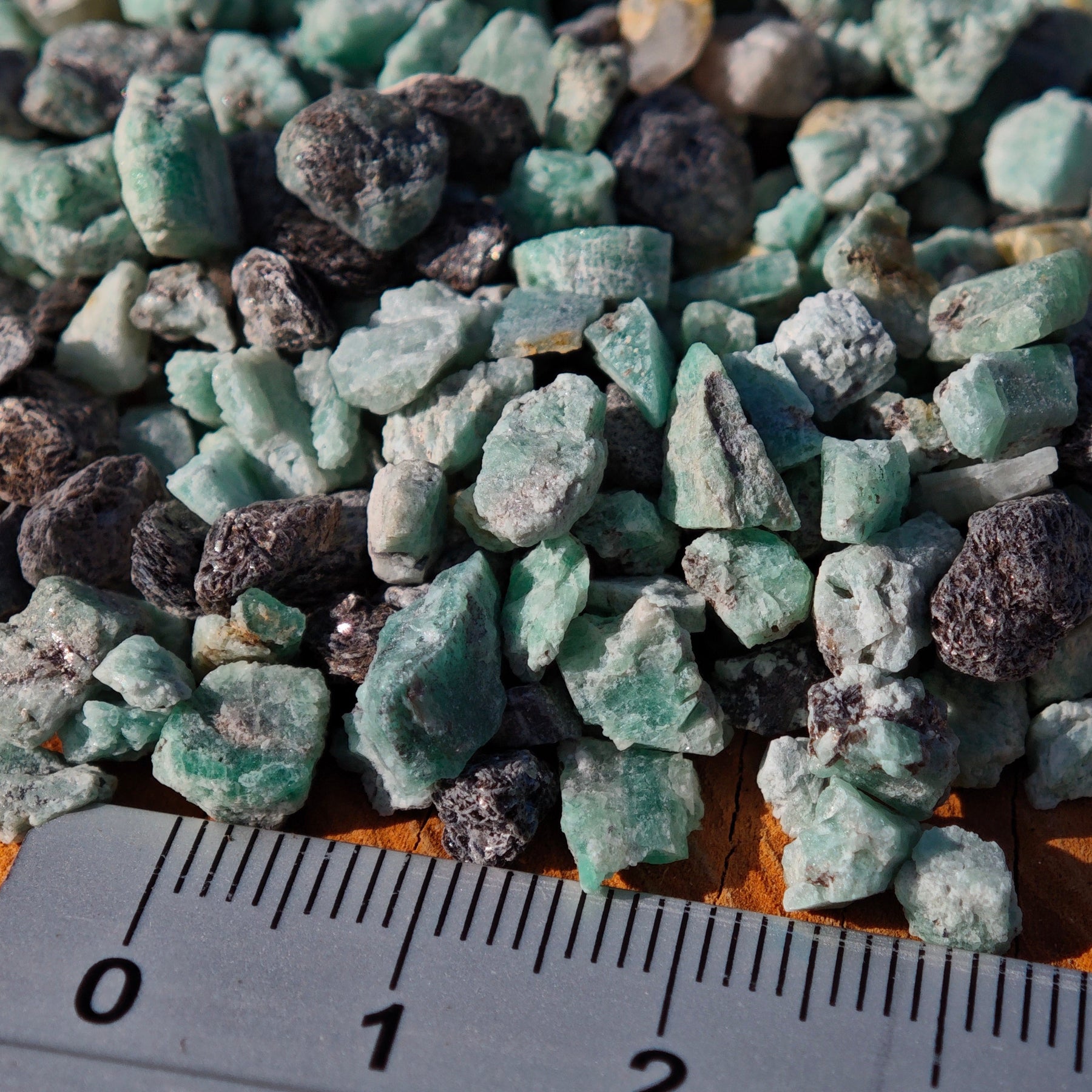 Die kleinen Rohsteine haben eine Größe von ca. 0,1 bis 0,3 cm (+/-).